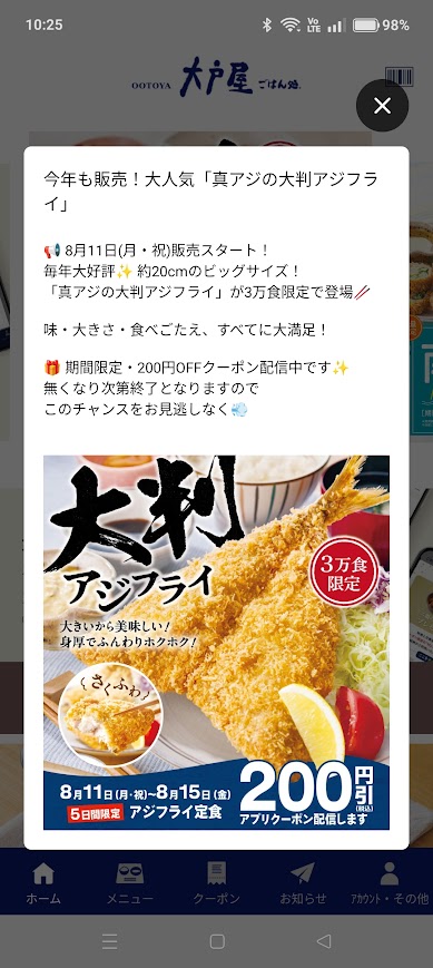 私のスマホに大戸屋アプリから